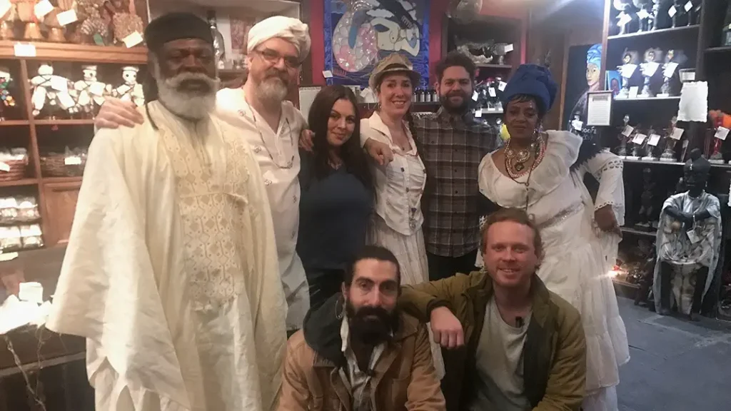 After getting the lay of the land and becoming more familiar with the LaLaurie Mansion, the Portals to Hell crew get started setting up equipment and laying out tools for the night’s investigation. Among the tools being used is a mapping camera, which detects shapes like human figures and shows a stick-figure like projection over their bodies. As the investigation begins, Jack immediately picks up on something (or someone) sitting in a chair in the living room, though it is only showing up on the mapping camera. The figure appears to move from the chair to beside it, then disappears, only to reappear moments later. Using a special device designed to detect the voices of spirits, Katrina asks the spirit to tell them how many people are in the room, to which the response is: 9. Startled by the fast response, the team quickly does a headcount: 9.